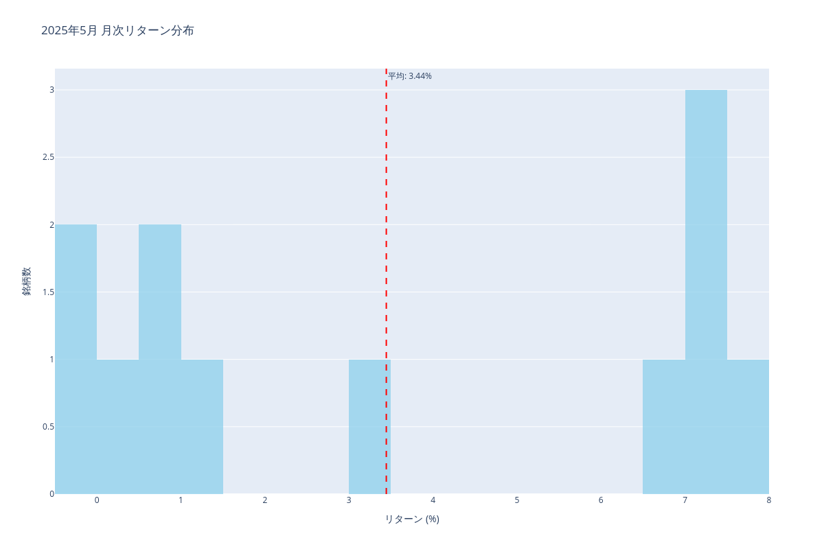 このレポートは2025年5月の月次リターンデータに基づく分析結果を示しています。